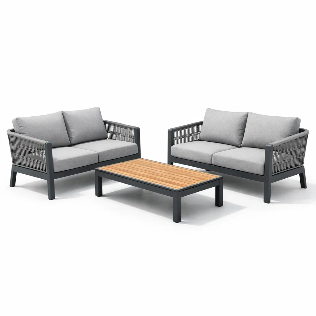 Garten sofa set aluminium sofa mit polyesterseil und teakholztisch grau